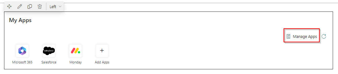 Manage Appsicon in the top right corner of the web part. This will open theMy Appslibrary. -